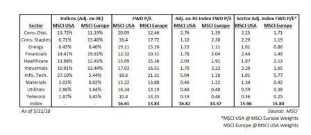 Ajustado por sectores, pues resulta que Europa está algo más barata que USA, pero no tanto, no se crean. @lhamtil