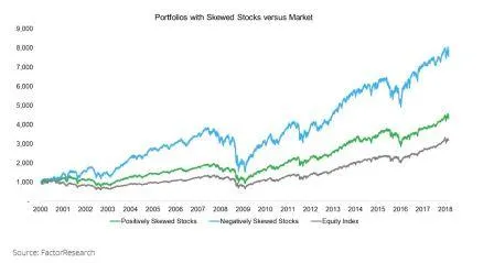 - Research - Skewness As A Factor (Factor Research, @FactorResearch). Skewness is la medida de la asimetría (positiva o negativa) en la distribución de probabilidades de una variable sobre su media. En este caso, lo que se inició como una mera curiosidad intelectual, terminó resultando en que las empresas con estas asimetrías tienen mejores resultados que el mercado.