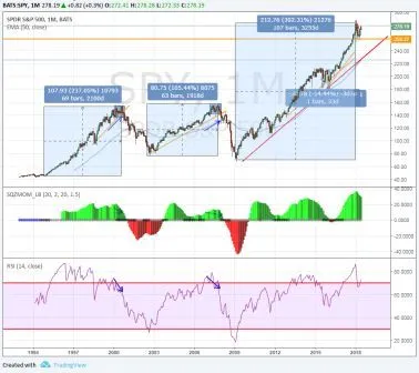 Estado de situación: Visión histórica de los tres últimos ciclos de la bolsa americana con duración y porcentaje de revalorización.