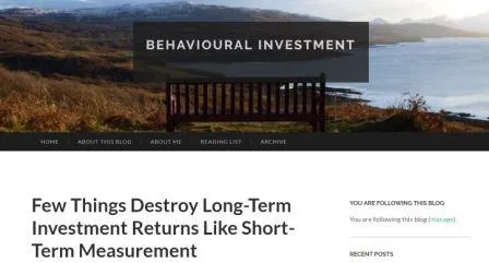 - Few Things Destroy Long-Term Investment Return Like Short-Term Measurement (Behavioural Investment). La tremenda dicotomía entre largo y corto plazo a la hora de invertir, y cómo afecta tanto al comportamiento de los gestores como de los inversores. La conclusión: Utilizar medidas de corto plazo para evaluar inversiones de largo plazo hace casi imposible que la gestión activa triunfe.