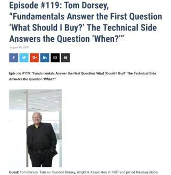 - Podcast - Tom Dorsey, “Fundamentals Answer the First Question ‘What Should I Buy?’ The Technical Side Answers the Question ‘When?’”. (The Meb Faber Show, @MebFaber). Conversación con Tom Dorsey donde, como el título dice, la utilización del análisis técnico puede ser de ayuda en parte del proceso de inversión, siendo la base los fundamentales. Hablan de temas tan diversos como la gestión pasiva, índices de capitalización o pesos iguales, sus mejores trades, cryptocurrencies, etc. Siempre interesante.