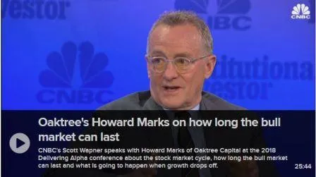 - Video - Oaktree's Howard Marks on how long the bull market can last. Howard Marks nos habla del ciclo del mercado, de los efectos de los recortes de impuestos en USA, del euro, de los tipos de interés, etc.