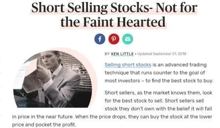 - Short Selling Stocks. Not for the Faint Hearted (The Balance). Ponerse corto en teoría es una posibilidad que desde el punto de vista fundamental conlleva el mismo análisis que estar largo. Pero los riesgos son importantes. Este artículo es ilustrativo al dar una visión realista de este tipo de operaciones.