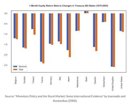 - Research - Timing Equity Returns Using Monetary Policy (Flirting With Models, @choffstein). En períodos donde los países tuvieron políticas monetarias expansivas, la rentabilidad de las acciones fue superior a aquellos períodos con políticas de subidas de los tipos de interés. La cuestión es si este exceso de rentabilidades se debió a esas políticas. Desde un punto de vista puramente estadístico no parece clara la respuesta.