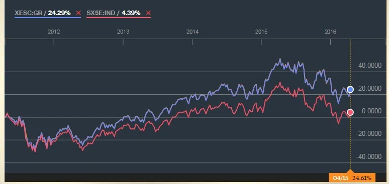 También he comparado estos ETF con la evolución del Euro Stoxx50, y ambos baten con diferencia a su índice de refencia ¿cómo es esto posible, sobre todo en el caso del que distribuye dividendos?