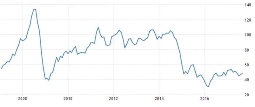 A pesar del incremento de los últimos meses, el precio del crudo se mantiene un 40 % por debajo de los niveles de 2014.
