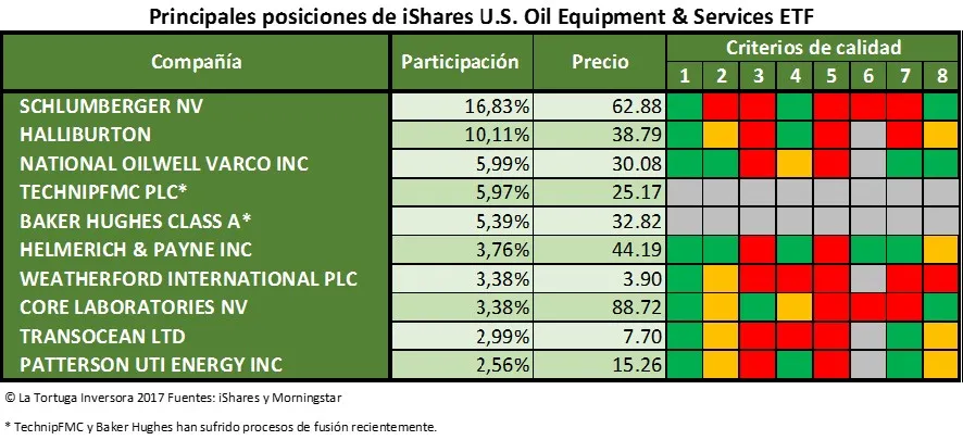 En esta ocasión, se van a analizar las diez principales posiciones del fondo de iShares U.S. Oil Equipment & Services ETF. Este ETF replica a las empresas que cotizan en Estados Unidos cuya actividad es la de proveer equipos y servicios para la extracción de petróleo. ¿Por qué se ha escogido este ETF? Pues bien, resulta que este ETF tiene una rentabilidad (YTD) del -25,42 %, la peor de todos los productos ofrecidos por iShares.