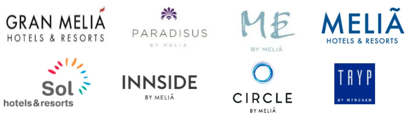Meliá es una empresa hotelera presente en una cuarentena de países de todo el mundo bajo ocho marcas comerciales. Actualmente, dispone de 388 hoteles con más de 99.000 habitaciones. La mitad de los hoteles están enfocados al turismo vacacional y la otra mitad son hoteles urbanos. El negocio del Grupo se puede dividir en dos principales líneas de ingresos: