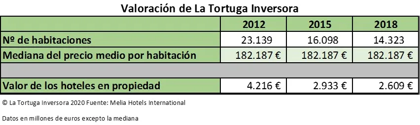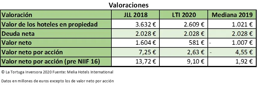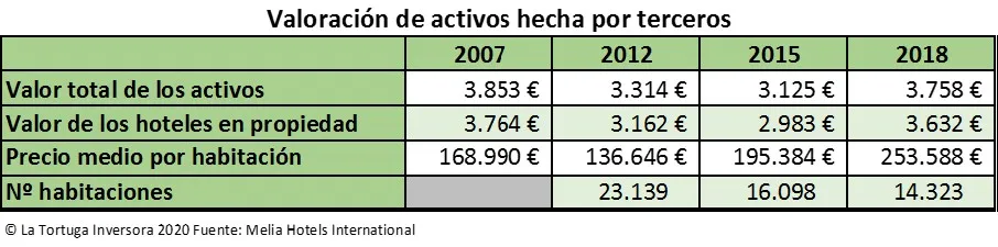 En 2018, Meliá contrató los servicios de la consultora Jones Lang LaSalle (JLL) para hacer una valoración de sus activos inmobiliarios. Dicho estudio determinó que los activos del Grupo tenían un valor de 3.758 millones de euros. Con la capitalización actual, la cotización tan solo representaría el 25 % de dicho valor. Es posible que tal valoración no sea la correcta después de todo lo que ha sucedido en el planeta, por ello se va a profundizar un poco más sobre el tema.