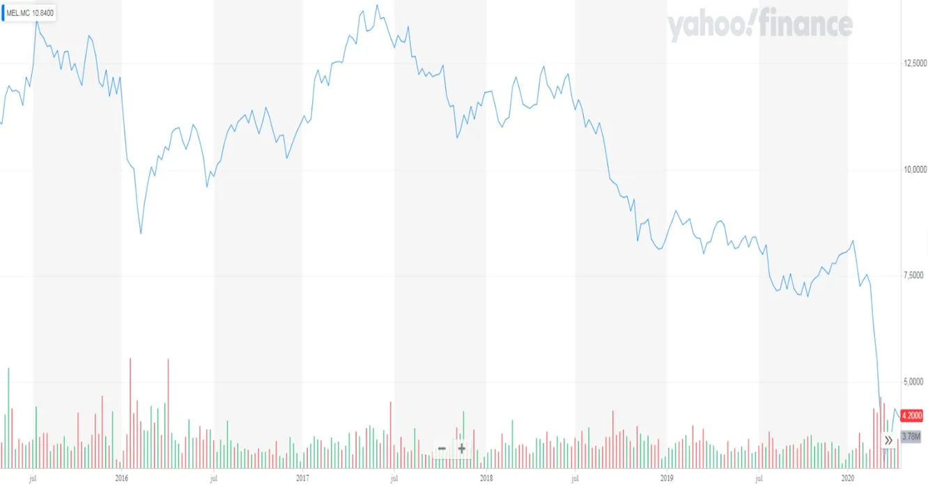 En este artículo se va a hablar sobre Meliá Hotels Internacional, cuyas acciones forman parte del Ibex-35. Mientras estoy escribiendo estas líneas, el selectivo español ha perdido en torno al 30 % de su capitalización desde comienzos del año 2020.