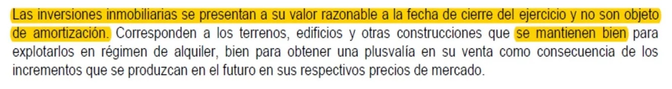 *NOTA POSTERIOR AL ARTÍCULO: Existe un error de interpretación por mi parte, ya que entendí "se mantienen bien" como que el mantenimiento de los inmuebles es el adecuado. No obstante, lo importante de este apartado es que la SOCIMI no amortiza sus inversiones inmobiliarias. Por ejemplo, empresas antiguas en el sector inmobiliario como Metrovacesa o Testa, ambas adquiridas por Merlin Properties, sí que amortizaban sus inversiones inmobiliarias a través del método lineal (entre 50 y 75 años).