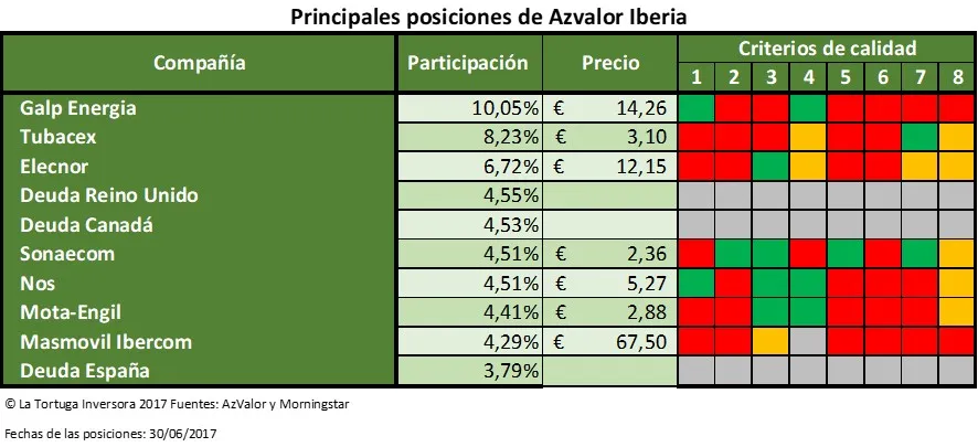 Nota: Las posiciones actuales del fondo azValor Iberia pueden ser significativamente diferentes.