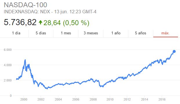 Desde que el Nasdaq 100 superase los máximos de la burbuja puntocom, sigue conquistando nuevos récords día a día (el último, el 8 de junio). Mientras, acciones como las de Google (Alphabet), hacen historia también por encima de los 1.000 dólares que llegó a alcanzar el 5 de junio (y eso, después de haber hecho un split en 2014, por el que multiplicaba el número de acciones a costa de reducir el precio).