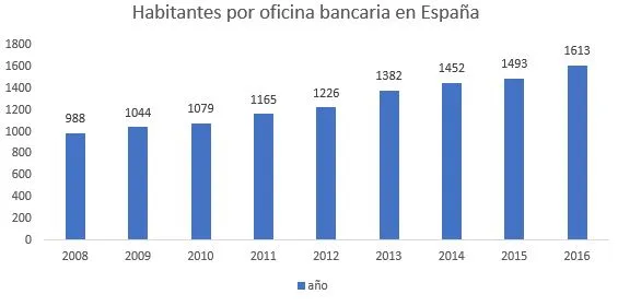 Y eso a pesar de que se ha ido reduciendo paulatinamente en los últimos años el número de oficinas por habitante en España: en 2008 había una cada 998 habitantes frente a la proporción de una por más de 1.600 habitantes de 2016. De hecho, casi la mitad de la reducción de sucursales bancarias en la eurozona en estos últimos 8 años corresponde a España.