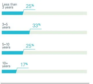 Además, a nivel global, el porcentaje de inversores que dice tener un horizonte de largo plazo es muy reducido. Solo un 17% de los más de 8.000 inversores contactados a nivel mundial afirma tener un horizonte de más de 10 años.
