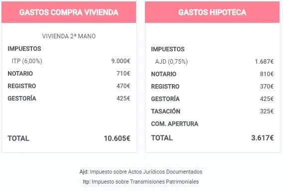 Si quieres hacer una estimación de tu caso personalizado, puedes utilizar esta herramienta que te dirá cuántos gastos tendrás que asumir por la compra de una vivienda y por la contratación de una hipoteca.