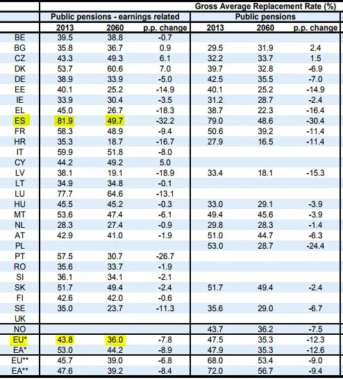 Claro que, actualmente es también uno de los países en los que la tasa de sustitución es más elevada. La media de los países de la Unión Europea está en el 43,8%, prácticamente la mitad.