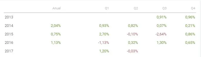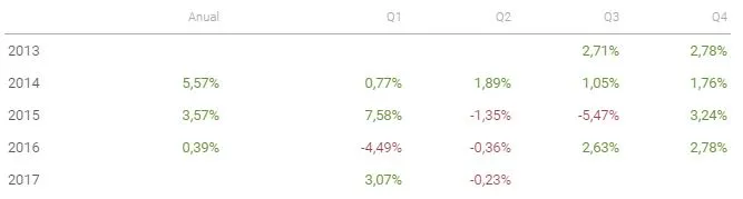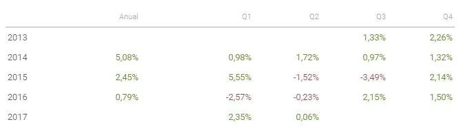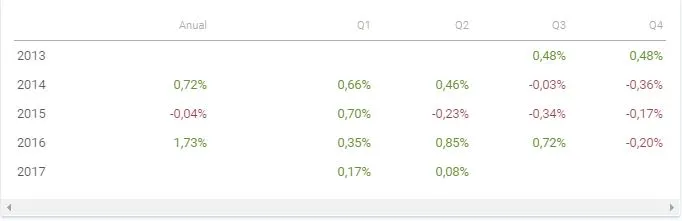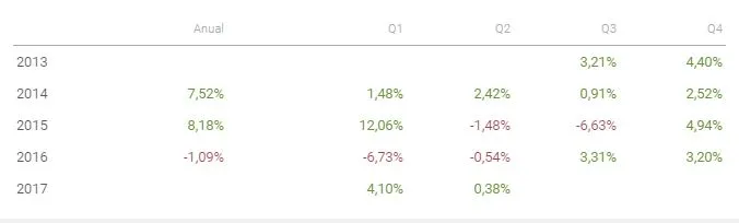 Estas son las rentabilidades año a año y trimestre a trimestre del producto: