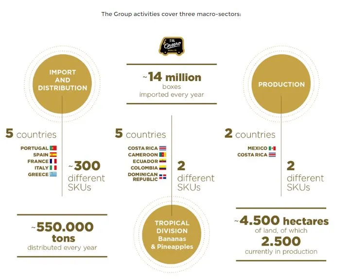Es un grupo italiano fruto de una fusión bastante reciente entre dos compañías llamadas GF Group y Glenalta Food. No llega a los 200 millones de euros de valor bursátil. Se dedica a la importación y distribución de fruta y vegetales en la zona mediterránea. Está dividida en 3 áreas de negocio (ver imagen inferior).