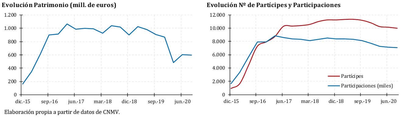 Por su parte, el número de partícipes se sitúa ahora ligeramente por encima de los 10.000, esto es, casi un 12% menos del máximo alcanzado en el segundo trimestre del pasado año.