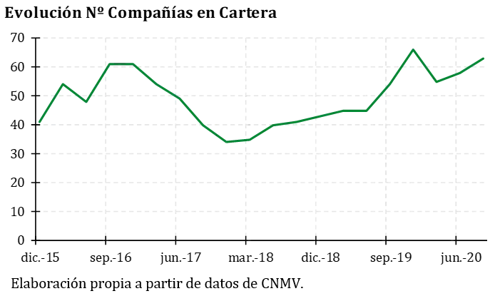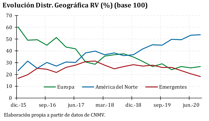 Por su parte, la inversión en compañías radicadas en países emergentes ha oscilado entre el 15% y el 30%, siendo en la actualidad de entorno al 18%. Hay que recordar que la inversión en estas compañías está limitada al 35%.