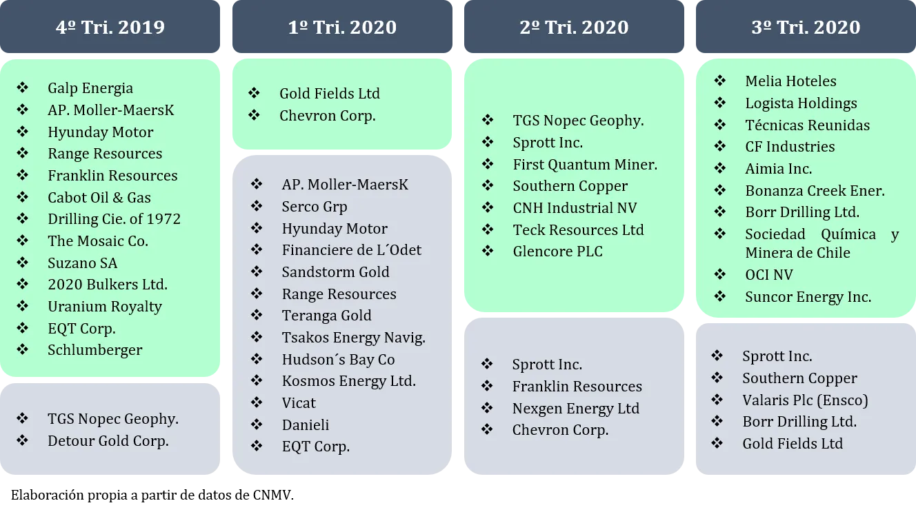 Evidentemente, esto no significa necesariamente que hayan variados todas las posiciones en cartera. De hecho, como se muestra en el siguiente cuadro las acciones de Gold Fields, Chevron y Souther Copper han sido compradas y vendidas durante el mismo año.