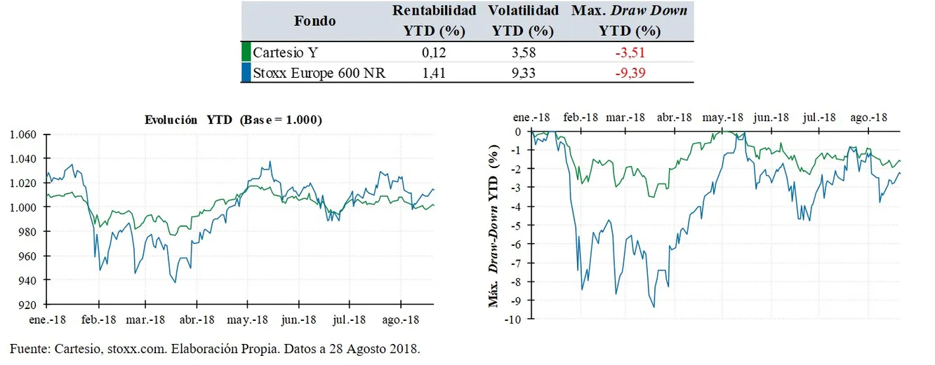 Para terminar, durante 2018 Cartesio Y acumula una rentabilidad del 0,12% frente al 1,41% del índice Stoxx Europe 600 NR.