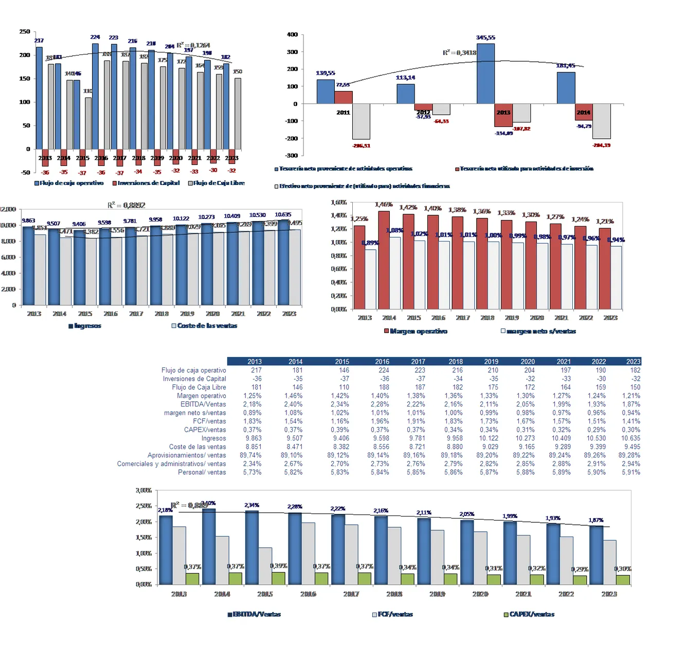 Todos los indicadores relativos al CAPEX son favorables. Es un sector que puede desarrollar su actividad con un nivel de inversiones muy cómodo. Creo su potencial para generar flujos de caja libre elevados no proviene del su negocio típico, sino de su brillante gestión del circulante, y de su acertada política de inversiones con un CAPEX reducido.