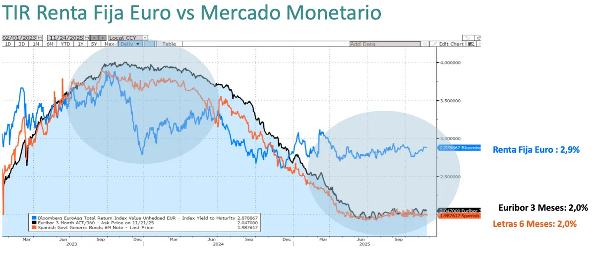 "Ha habido cierta traslación, pero demasiada gente sigue invertida en el mercado monetario", señaló el director de inversiones de la firma, Diego Fernández Elices, quien instó a este movimiento teniendo en cuenta que "ahora sí que tenemos certidumbre casi total que un monetario va a ser peor".