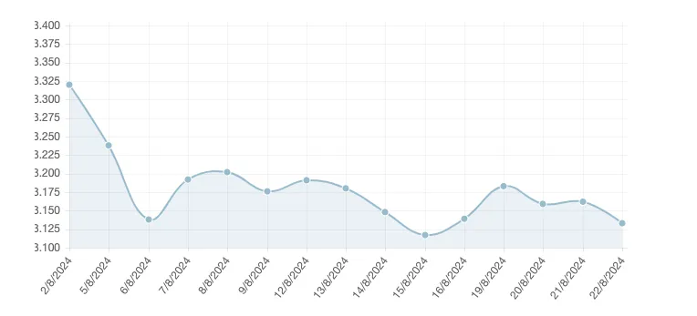 El euríbor a 12 meses continúa en la senda de descensos. Tras cerrar julio en el 3,526%, su mayor bajada anual en 11 años, la media mensual de agosto está ya en el 3,189%, según datos actualizados 23 de agosto. De cerrar en estos niveles, el indicador registraría su quinto retroceso consecutivo en 2024.