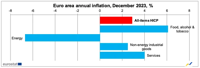 El incremento de la inflación del último mes de 2023 es algo inferior de lo que esperaba el mercado, que situaba el repunte entre el 3% y el 3,1%.