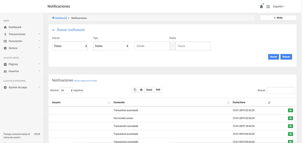 - En la pasarela de pago del comercio se puede ver todas las operaciones que se han realizado a lo largo del día: tipo de tarjeta (débito o crédito), marca de tarjeta, país donde se ha realizado la transacción, IP, importe, datos de facturación del cliente, descripción de la compra…etc