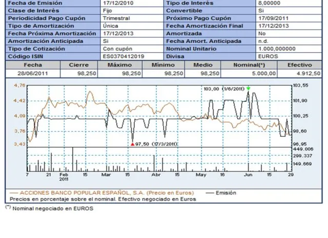 Una buena opción a corto plazo, 2013, que además ofrece un extra de rentabilidad, por encima del 8%, ya que se ha negociado por debajo de la par y que colocalas acciones a vencimiento a precio de mercado....