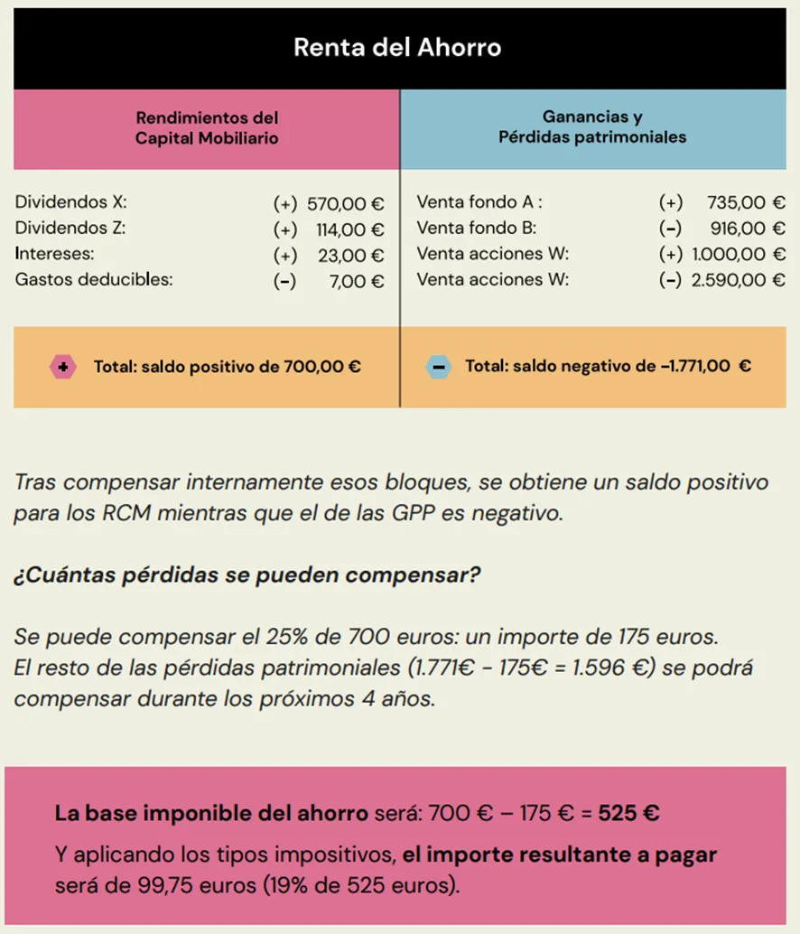 Vamos a consultar (y sintetizar) lo que nos dice la Agencia Tributaria: Agencia Tributaria: Integración y compensación de rentas en la base imponible del ahorro.