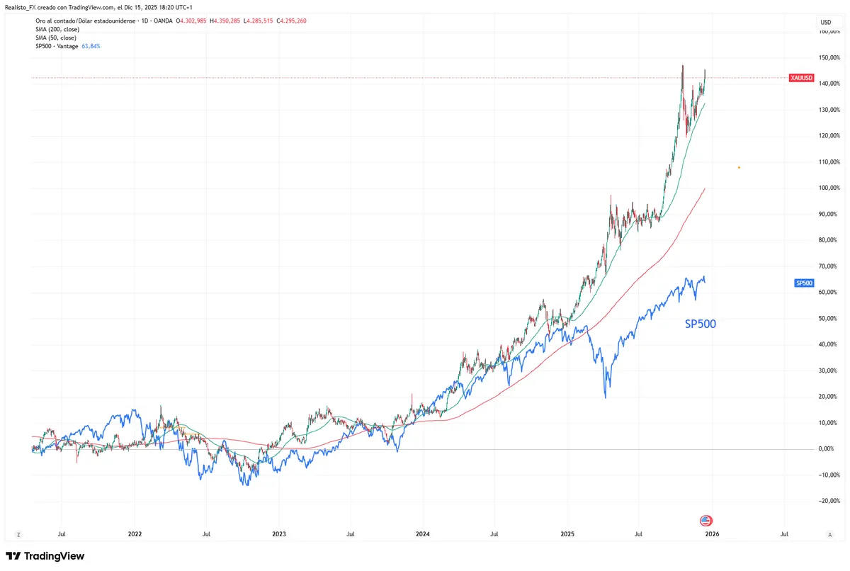 Conviene recordar que el Oro no produce nada, y en estos momentos tiene una divergencia importante con la evolución del SP-500.