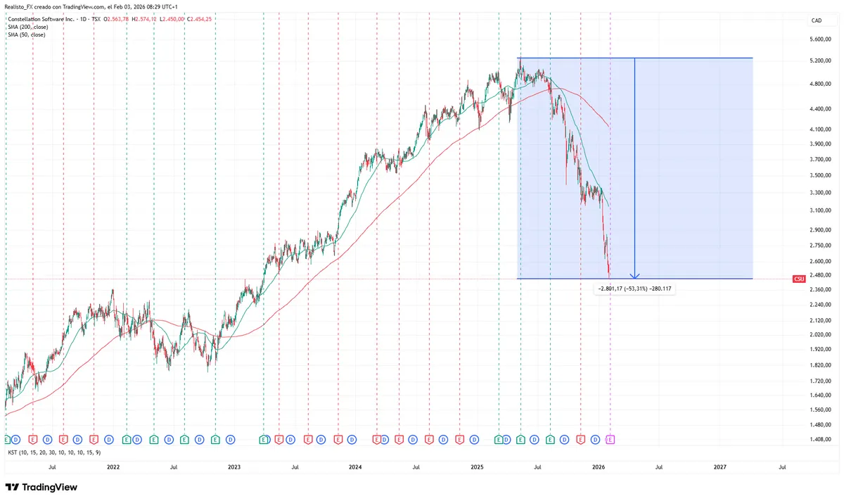 La pauta la marca Constellation Software, compañia canadiense que aglutina unas 500 - 600 compañias de software adquiridas en el transcurso de su historia. Acumula una caída del 50% desde Máximos