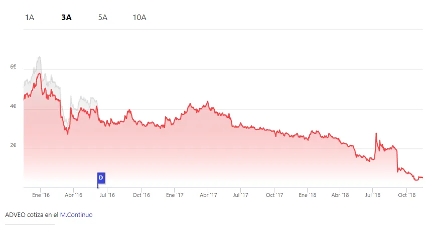 La estampida de inversores de la pequeña compañía que dirige Jaime Carbó, exconsejero delegado en Deoleo, comenzó en septiembre después de que Adveo comunicase que habían fracasado las negociaciones con un inversor industrial para conseguir financiación. Las acciones de la papelera, en crisis permanente, acumulaban hasta hoy un desplome del 81% desde enero y firmaban su quinto año consecutivo de descensos. Su capitalización bursátil apenas supera los 10 millones de euros.