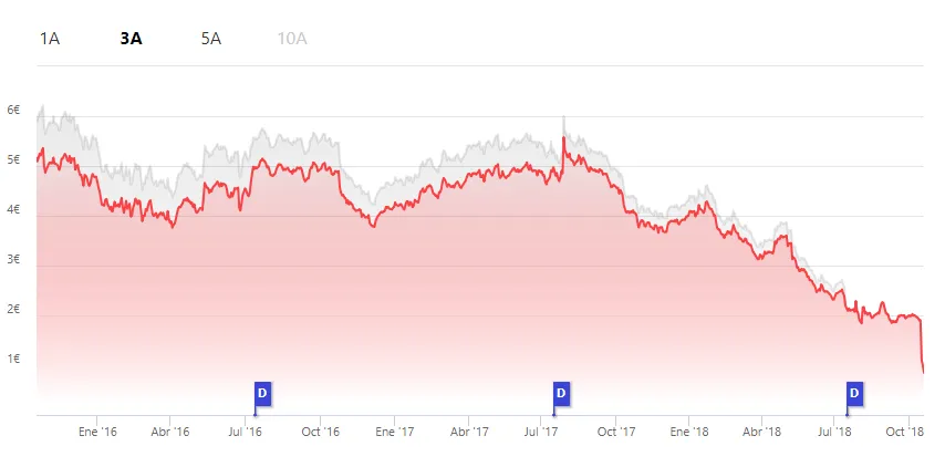 Ese ‘profit warning’ ha terminado de dinamitar a DIA en bolsa, que cae un 85% en bolsa desde que Fridman entró en julio de 2017. Parecía imposible, pero Goldman Sachs ha conseguido en los últimos días recuperar la mayoría de las acciones que tenía prestadas a los ‘hedge funds’ bajistas, sin que esa recompra haya hecho subir la cotización. Todo lo contrario. Las acciones de DIA se han derrumbado desde el viernes un 55%, de 1,9 a 0,85 euros. Apenas vale 500 millones en bolsa.
