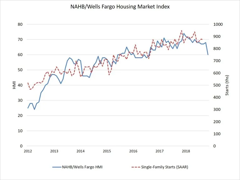La confianza de los constructores de vivienda en EEUU ha registrado en noviembre un brusco deterioro respecto al mes anterior y mucho más de lo esperado por los analistas. El informe publicado por la NAHB (Asociación Nacional de Constructores de Viviendas) registró una lectura de 60 puntos frente a los 67 esperados y los 68 del mes anterior. Se trata del nivel más bajo del índice desde el Brexit de junio de 2016 y la mayor caída mensual en cuatro años.