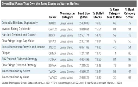 La empresa de análisis y datos financieros Morningstar elabora todos los años una relación de fondos que invierten en las mismas compañías que el archiconocido inversor.