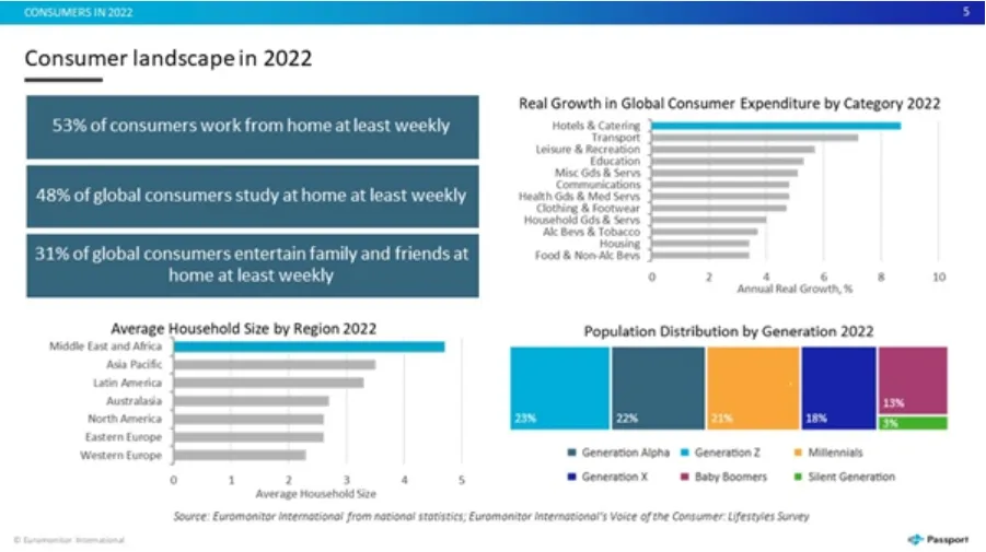 Ahorradores e inversores tienen una oportunidad destacada en esta megatendencia, según detalla Euromonitor, firma líder en estudios estratégicos de mercado. “El gasto mundial de los consumidores crecerá un 4,5% interanual en términos reales en 2022”, detallan en un informe de enero. El siguiente gráfico muestra el peso de las generaciones más jóvenes: