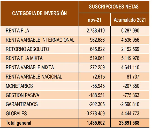 Inverco. Datos provisionales noviembre 2021.