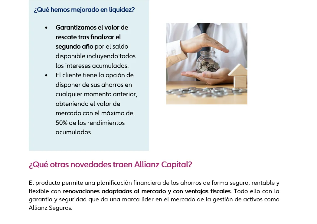 El cliente Allianz Capital busca invertir en un producto a medio o largo plazo, planificar su jubilación e invertir en una compañía líder como Allianz Seguros.