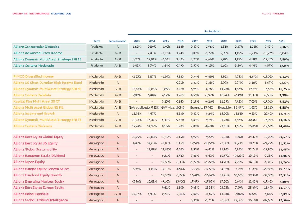 CUARO RENTABILIDADES PRODUCTOS FINANCIEROS 2023