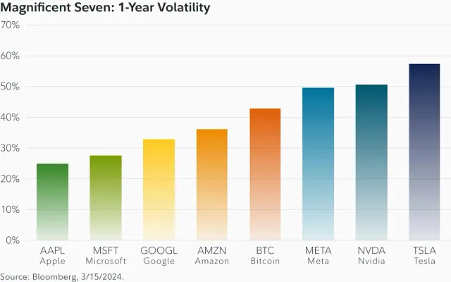 En un estudio reciente de Zack Wainwright, Research Analyst de Fidelity Digital Assets (división de activos digitales de Fidelity), Bitcoin ha demostrado ser menos volátil que empresas establecidas como Netflix y otras firmas del S&P 500. "Observamos que, en comparación con algunas de las acciones más populares y de gran capitalización, Bitcoin muestra una volatilidad menor en los últimos tiempos" señala Wainwright.