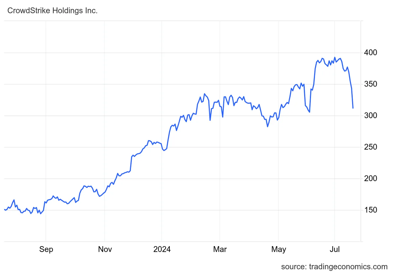 Al inicio de la sesión, las acciones de Crowdstrike bajaron hasta un mínimo intradía provisional de 290,1 dólares, aunque poco después comenzaron a recuperarse, reduciendo la caída al 11% y situándose en torno a los 304 dólares.