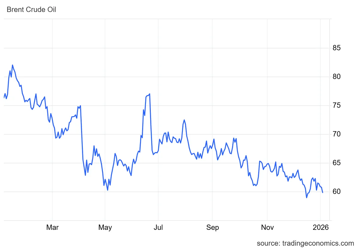 El Brent baja hasta los 60,4 dólares y el WTI se sitúa en torno a los 57 dólares en un contexto de tensión geopolítica y mensajes de control estadounidense sobre la industria petrolera venezolana.