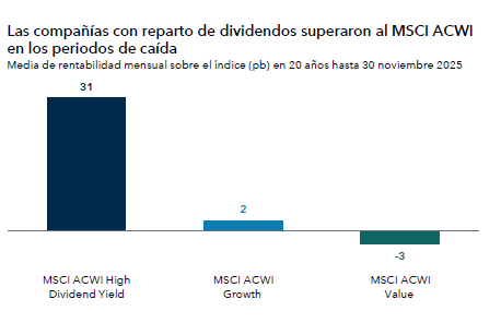 La gestora subraya que, aunque las rentabilidades pasadas no garantizan resultados futuros, estos datos ilustran el papel defensivo que pueden desempeñar los dividendos en determinados contextos de mercado .
