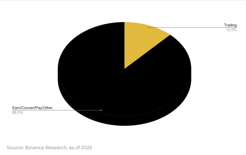 Además de su crecimiento en volumen, el uso de stablecoins ha evolucionado significativamente: del trading especulativo a funciones prácticas como pagos, ahorro, gestión de tesorería y operaciones entre empresas. De hecho, según Binance, "solo el 12% de los usuarios se centra en trading, mientras que el 88% usa stablecoins para funciones prácticas como pagos, ahorro o conversiones".