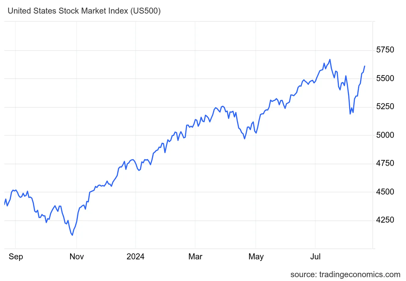 El mercado ha encontrado soporte en la expectativa de que la Reserva Federal mantenga una postura moderada en su próxima reunión en Jackson Hole, Wyoming, donde los inversores esperan señales sobre futuros recortes de tasas de interés, dados los recientes datos económicos que indican una desaceleración de la inflación y un enfriamiento del mercado laboral.